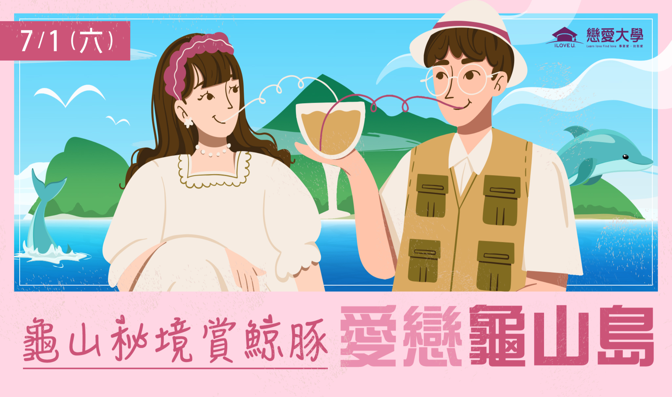 (費用包含:搭乘遊艇環繞龜山島|登上龜山島|島上專業導覽|追逐海上鯨豚|美味合菜午餐|聯誼活動|配對成功有機會獲得電影票2張。)